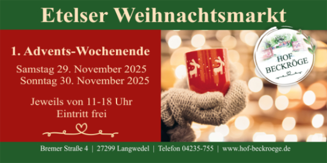 Den Alltagsstress vergessen, eine stimmungsvolle weihnachtliche Atmosphäre aufnehmen, schöne weihnachtliche Sachen einkaufen – so etwas findet man eigentlich nur auf dem Hof Beckröge, gleich neben dem Etelser Schloss.