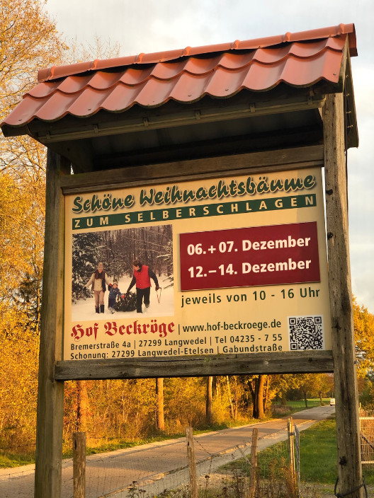 Schöne Weihnachtsbäume verkaufen wir auf unserem Hof Beckröge in Langwedel-Etelsen. Nach Ihrem Weihnachtsbaum-Einkauf bekommen Sie einen Gutschein für heißen Glühwein und Zimtapfelsaft.