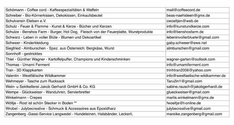 Die Aussteller vom Etelser Weihnachtsmarkt am 30.11. + 1.12.2024: