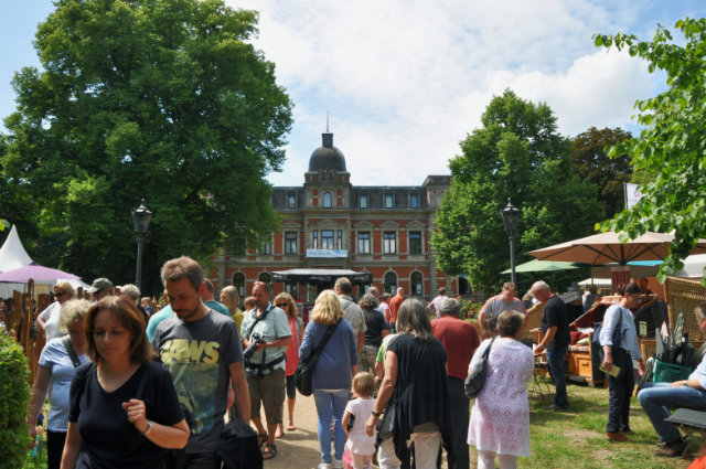 (1) Kunsthandwerkermarkt Etelser Schlossgartenfest mit Blick auf das Etelser Schloss.